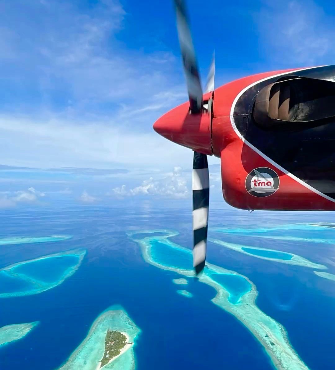 Теперь стало тихо и безумно красиво, а вот и знакомая картинка из инстаграмма: иллюминатор, пропеллер, бирюзовый океан и мелькающие острова. В полете ты делаешь миллион фотографий, потому что все безумно красиво и ново, думаешь о том, почему пропеллер крутиться в обратную сторону, а летишь вперед, а в какой то момент кажется, что он вообще не крутиться из-за скорости вращения.