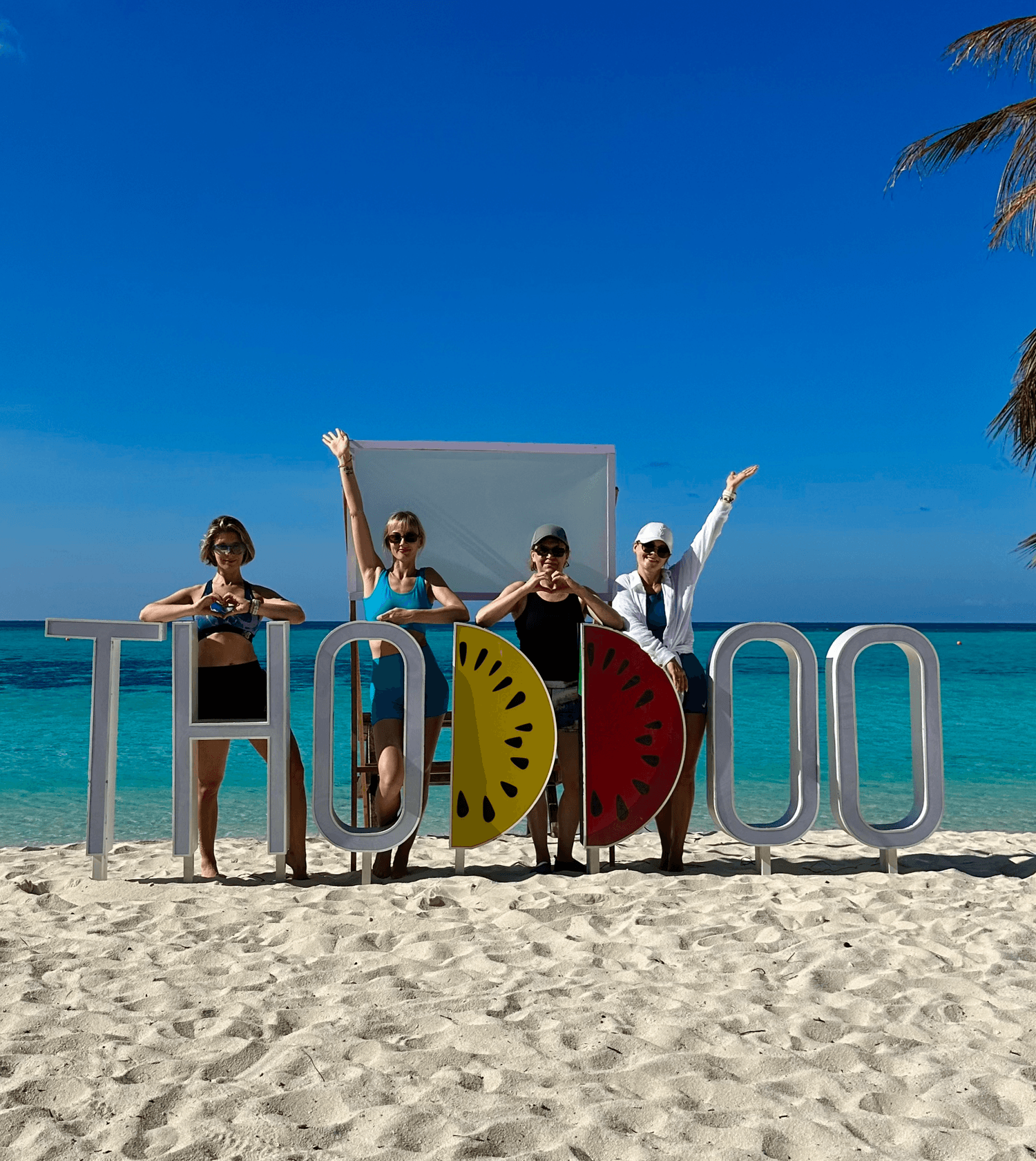 Выйдя из самолета, вы ощутите приятное мальдивское тепло и расслабленность. Далее все очень просто: на указанной мной стойке (информация из чата для участников) вас будет ждать приветливый, радушный, кудрявый гид. Он проводит вас до скоростного катера на остров Thoddoo, который мы посетим первым. Пока вы ожидаете в аэропорту, можно попить кофе в кафе, перекусить, там, кстати, выдают талончик на Wi-Fi, и купить сим-карту, если вам необходимо работать в отпуске. Уж как есть, понимаю. Ну или просто посмотреть на красивейший океан бирюзовых оттенков.