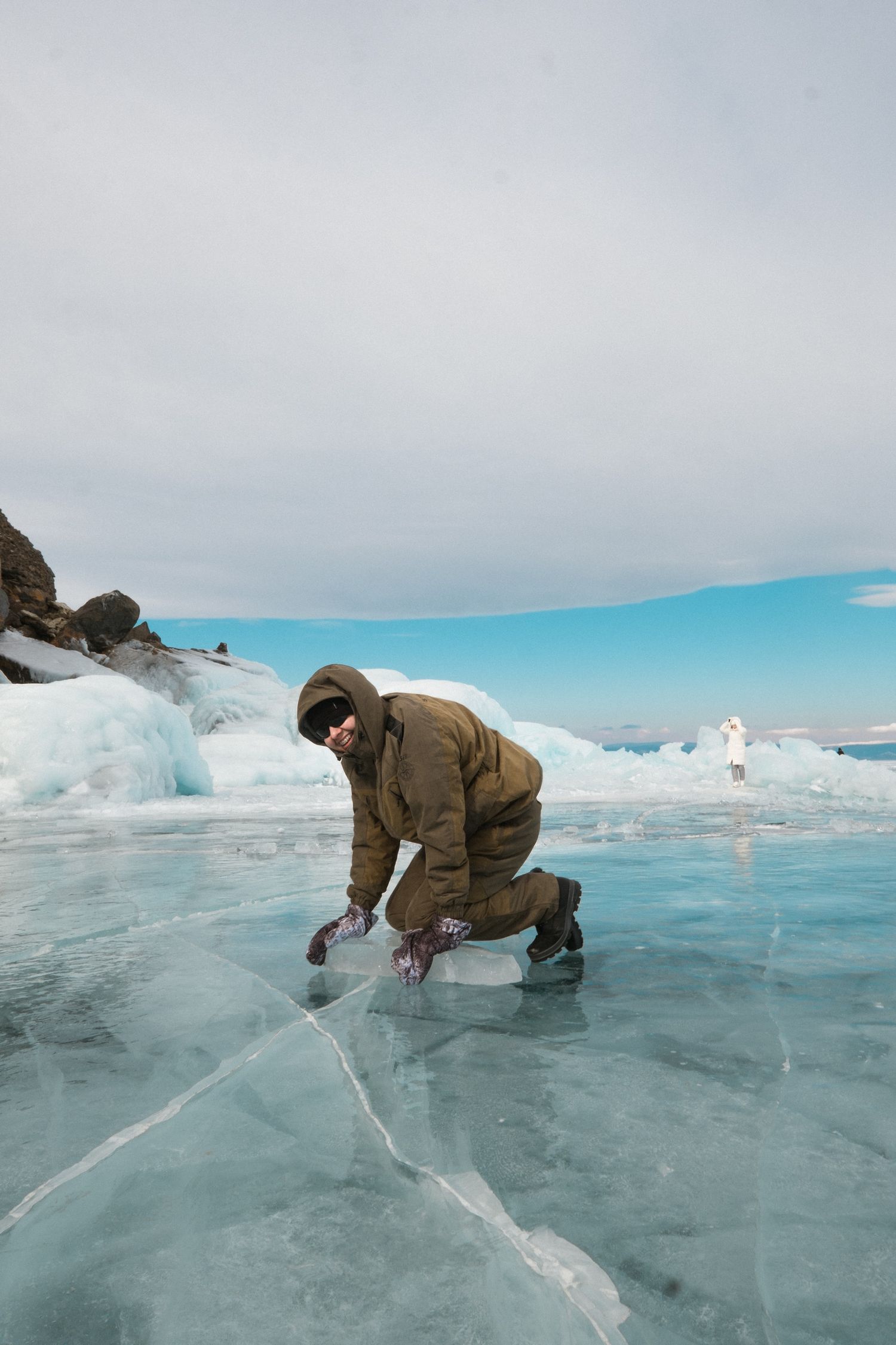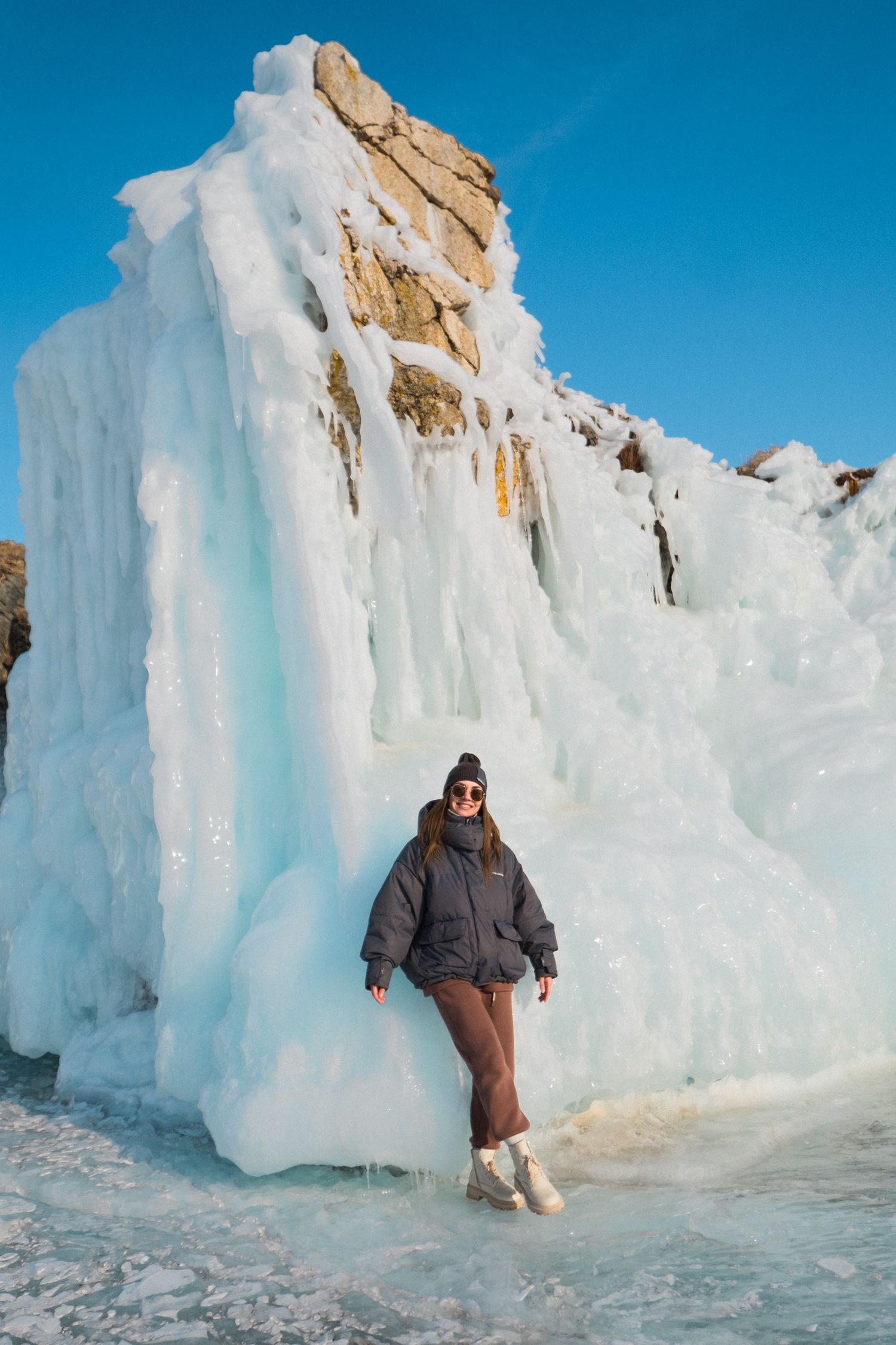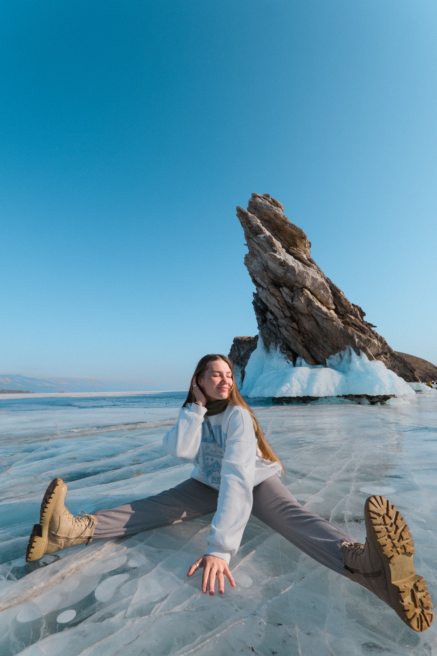 Встреча заката на скале Шаманка, прогулка по Хужиру, первая встреча со льдом