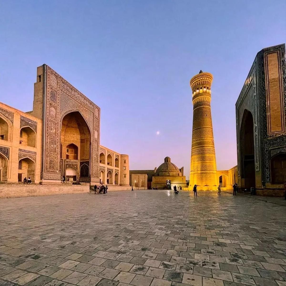 Далее вас ждёт Бухара — город-музей под открытым небом: Пои-Калон, крепость Арк, древние медресе и вечерние огни старого города.