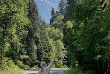 На подъезде к поселку нас ждет одна из красивейших дорог Северного Кавказа: серпантин с видом на гору Белалакая. Ее называют Кавказский Маттерхорн из-за похожих очертаний на самую знаменитую вершину Швейцарии.