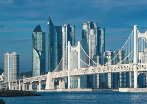 Пусан встретит морем, мягким бризом и яркими панорамами: деревня Гамчхон, храм Хэдон Ёнгунса на скалах, канатная дорога над водой и живой городской ритм.