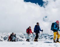 Встреча группы в аэропорту Минеральные Воды и на комфортном микроавтобусе отправляемся в село Терскол. Дорога займёт 3 часа. В пути не скучаем, знакомимся с товарищами по походу, разглядываем горы в окно или отсыпаемся после раннего прибытия. В Терсколе заселяемся в отель и отправляемся ужинать. После еды устроим свечку-знакомство, обсудим предстоящую программу и проверим экипировку. Перед сном можно погулять по посёлку и полюбоваться ночным кавказским небом.