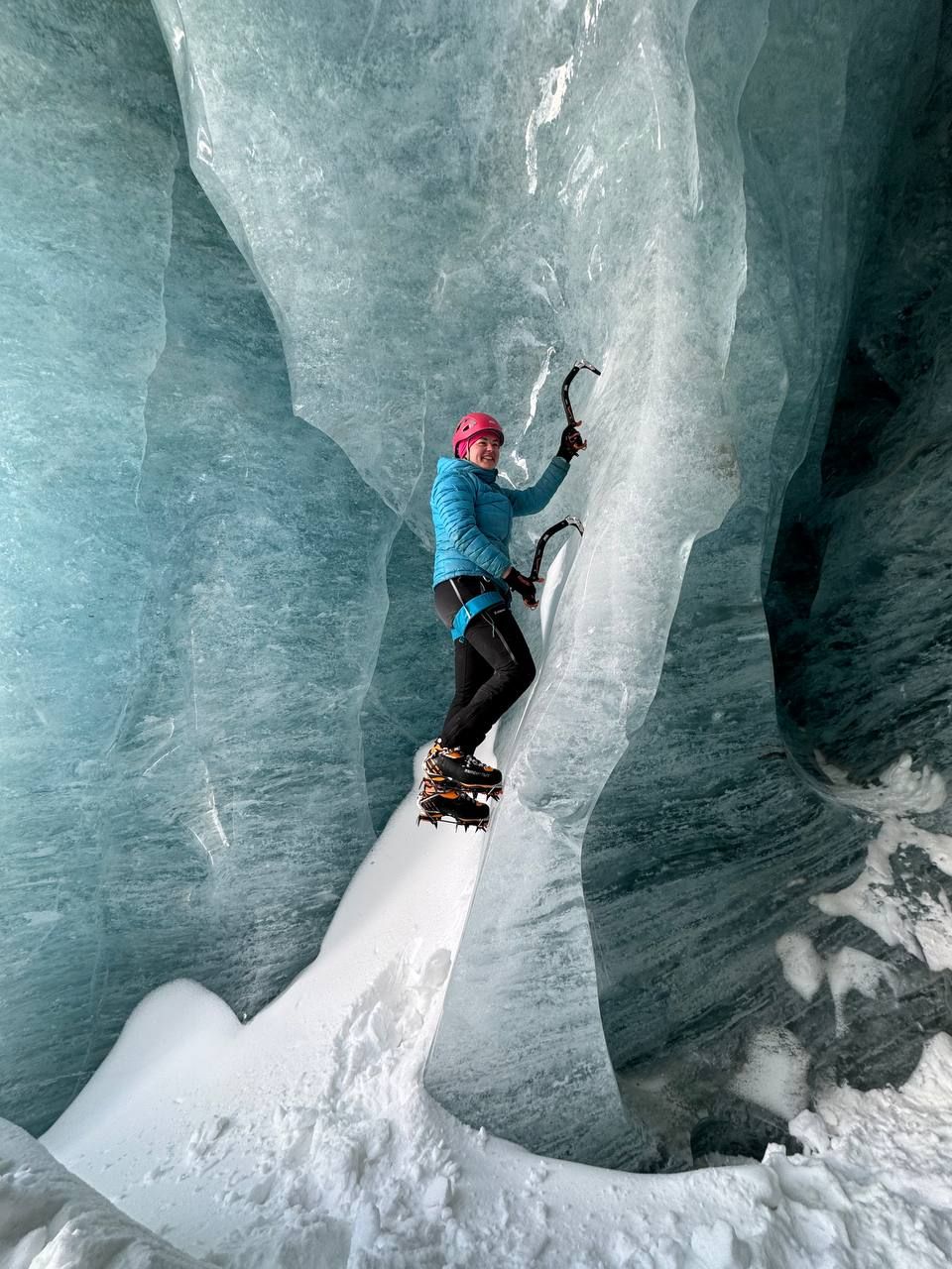 Водопадный лед позволяет отточить технику и наработать уверенность в передвижении по льду.