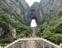 Гору Тяньмэншань, известную огромной сквозной дырой на вершине и стеклянной тропой над пропастью;