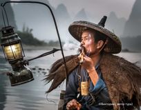 Фотосъемка рыбаков с бакланами на реке Ли;