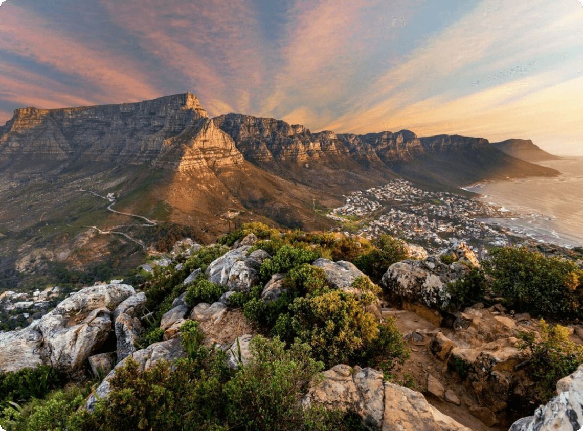 Вечер — Отправляемся в престижный район Camps Bay: белый песок, пальмы и Атлантика создают картину идеального отдыха. С бокалом игристого встречаем закат у океана, а затем наслаждаемся ужином в ресторане прямо у берега.