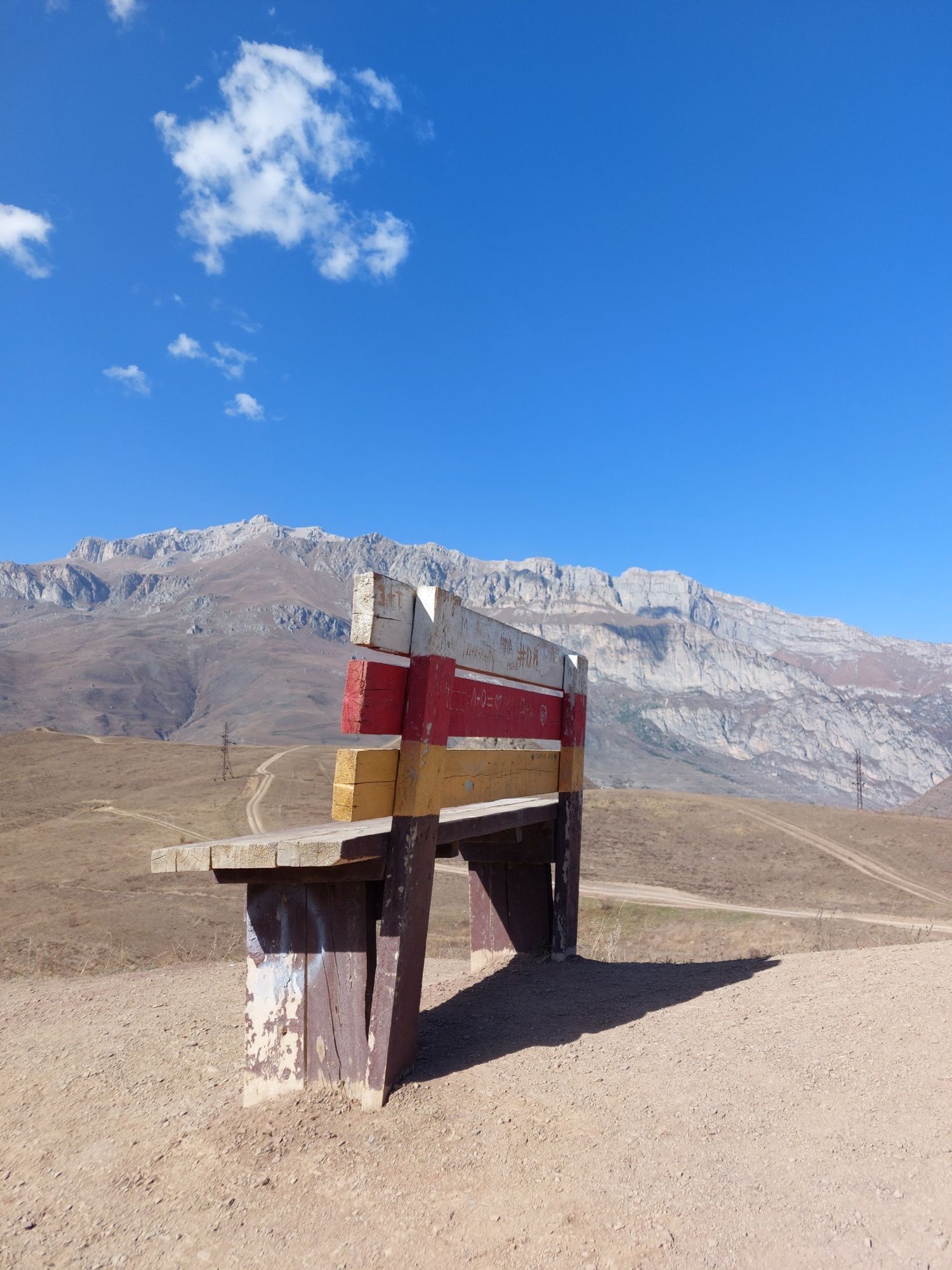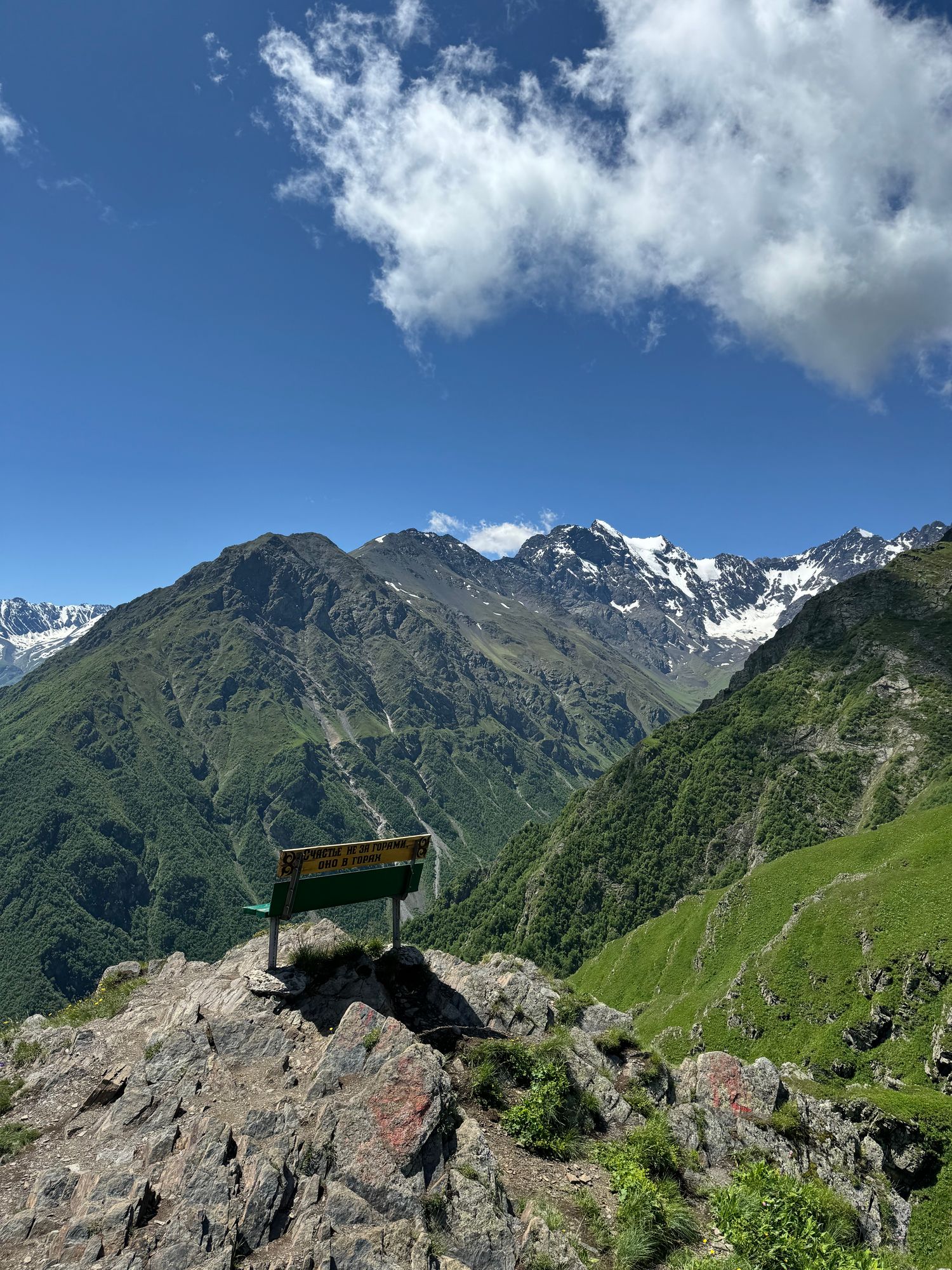 Лавочка с видом на поселок Верхний Фиагдонфото площадка качель над пропастью.
