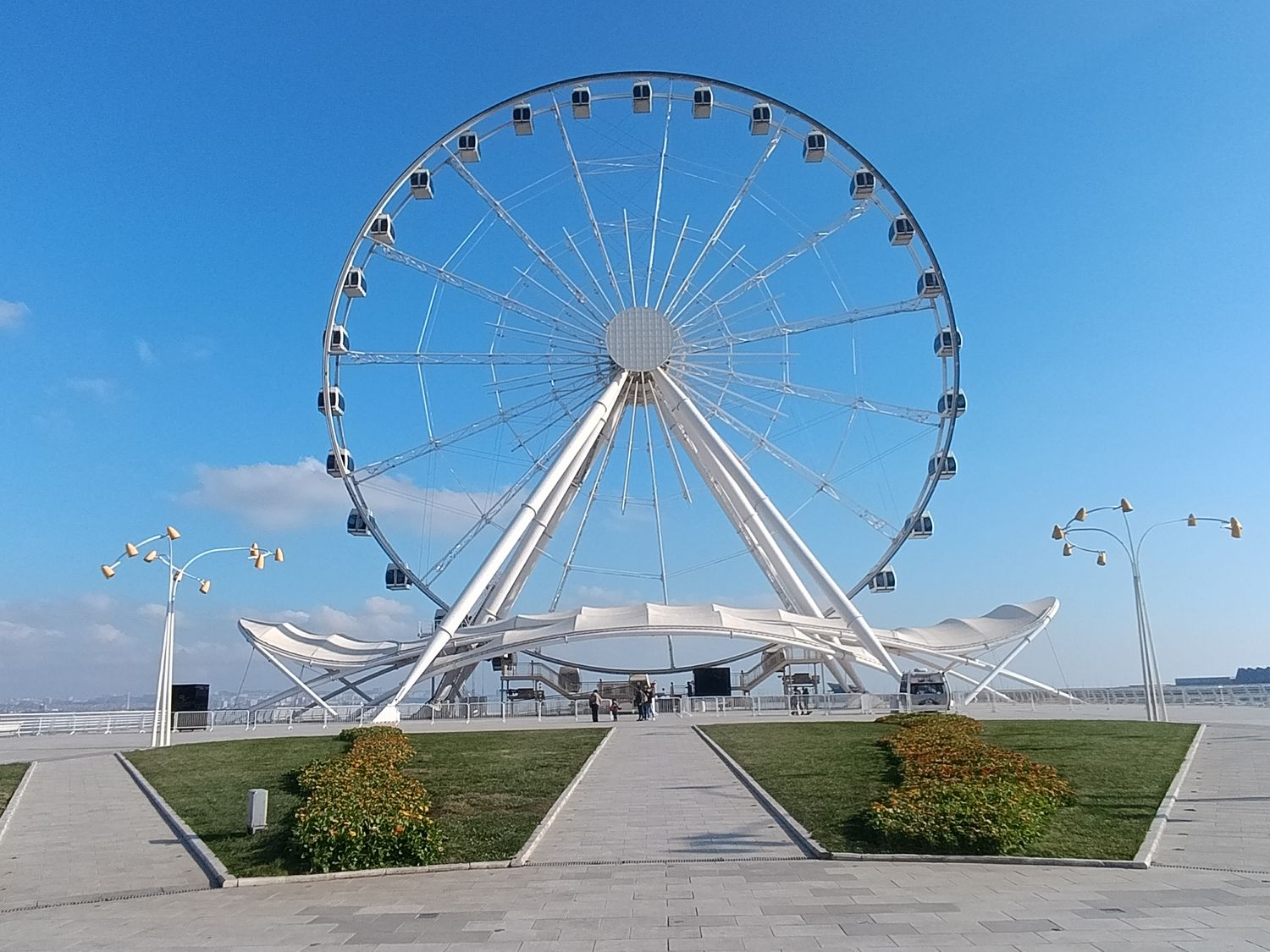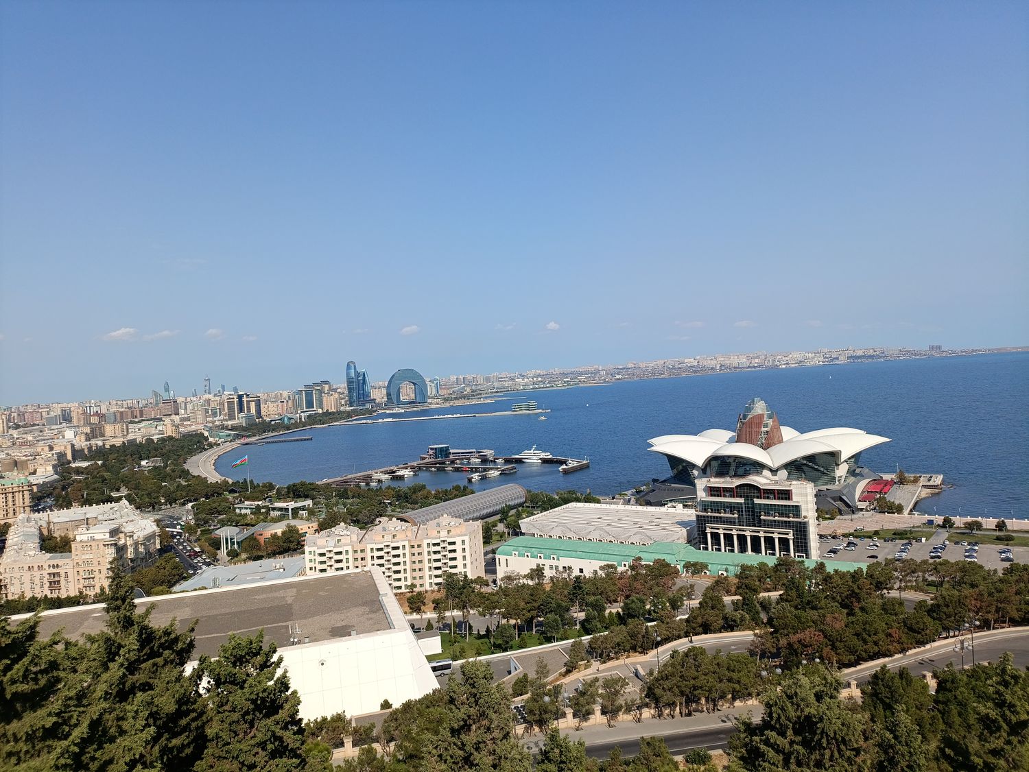Далее отправимся к центру Гейдар Алиева — спроектировано всемирно известным архитектором Захой Хадид, которое было признано самым красивым зданием мира в 2014-м году (осмотр без посещения); рассмотрим с услышим историю дворца Исмаилия, который был построен по заказу миллионера и нефтепромышленника Муса Нагиева в память своего безвременно умершего от туберкулёза сына Исмаила в стиле мрачной венецианской готики; прогуливаясь на набережной, увидим музей ковров, международный центр Мугама, колесо обозрение, при желании погуляем на гондолах Малой Венеции; на фуникулере поднимемся к смотровой площадке, откуда открывается восхитительный вид на город и к Пламенным башням (Flame Towers) в форме языков пламени — которые являются одним из современных символов города и освещаются в ночное время суток, посетим аллею почетного захоронения, где покоятся такие личности, как Муслим Магомаев, Гейдар Алиев, Рашид Бейбутов и др и полюбуемся архитектурными зданиями, которые были построены в конце 19-х в начале 20-х веков после нефтяного бума.