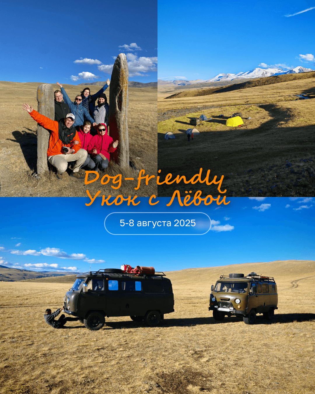 Это полноценная авто-экспедиция на легендарное плато Укок, куда можно — и даже лучше — ехать вместе с собакой.