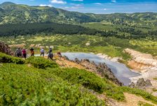 Планета Кунашир: Три огненных исполина — Тятя, Менделеева и Головнина. Вы будете спускаться в кратеры, слушать рев фумарол и купаться в озере, которое нагревает магма.