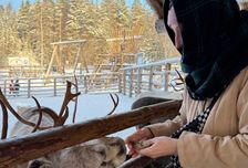Наш путь лежит через заснеженные леса в одно из самых атмосферных мест Карелии — Долину водопадов. Здесь нас ждёт знакомство с добрыми северными оленями и величественными лосями. Вы сможете покормить их прямо с руки и сделать фото в обрамлении хвойных деревьев и снежных сугробов — настоящая сказочная сцена скандинавской зимы. Здесь же завтракаем в местном кафе блюдами национальной кухни