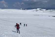 Сегодня преодолеем Авачинский перевал с набором 200 м высоты, затем выйдем на овражистую в начале и относительно ровную далее тропу, по которой направимся в сторону альпийских лугов и чистейших ручьев, по пути пройдем по шлаковым полям и снежникам с видами на ледники, а ночевку устроим у подножия Корякского вулкана в палатках.