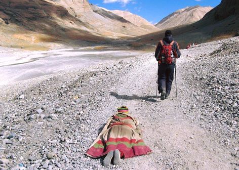 Кора (обход) вокруг горы Кайлас это попытка изменить свою жизнь, ход своих мыслей, это путешествие в себя. Считается, что за три дня пешего пути наша душа символически проживает еще одну жизнь, оставляет настоящую карму позади и получает возможность изменить свою судьбу.