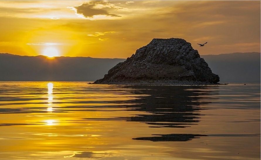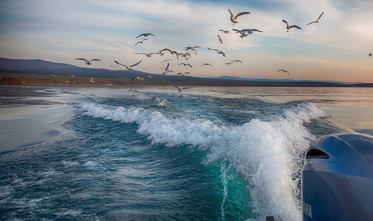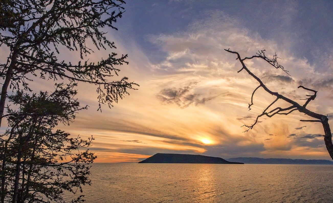 - Вы пересечёте остров Ольхон с юга на север и с запада на восток . Увидите озеро Сердце, курыканскую стену на мысе Хоргой, степи, пустыню и обрывистые берега восточного берега Ольхона.Закат на катере на острове Модотэ..