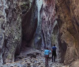 - Оценим масштабы Карадахской теснины — самой узкой в горах Кавказа (ширина 24 м, высота стен до 170 м).