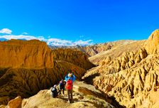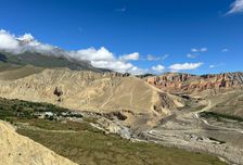 Королевство Мустанг - это обширная высокогорная долина с марсианскими пейзажами, каньонами, красочными слоистыми скальными образованиями и все это на фоне белоснежных Гималайских вершин.