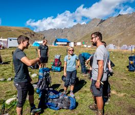 В 12:00. Сбор участников в Пятигорске (адрес и точное место укажет гид за несколько дней до тура). Далее отправимся в прокат, чтобы взять недостающее снаряжение. Переезд на поляну Эммануэля и ставим палатки в базовом лагере.