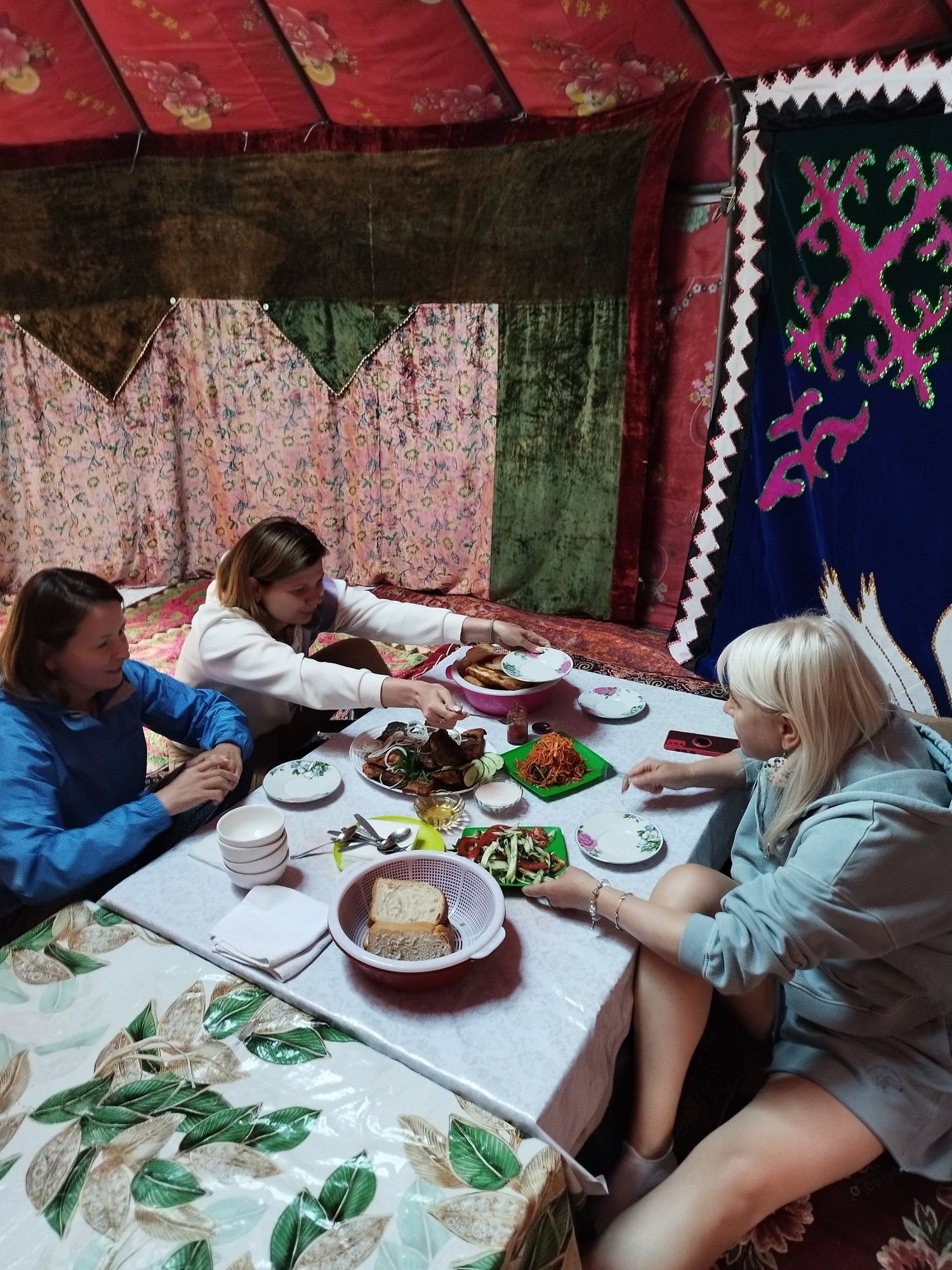 Выезд из Бишкека в 8.30 утра. Сегодня мы преодолеем 2 перевала высотой более 3100м. Будем делать остановки на самых верхних локация дороги и фотографироваться на фоне снежных гор и серпантинов. Спустимся в ущелье Чичкан, свернем с дороги и пойдем в разминочный трекинг по ущелью Ункур Сай, расстояние 5 км перепад высоты 250м. Там мы посмотрим небольшой водопад и сад необычных камней с наскальными рисунками древних людей. Вернемся к машине и едем обедать в кафе пельменная Золотой Улей, там готовят самые вкусные пельмени в мире. После обеда продолжим наш путь, обогнем по дороге озеро Токтогул и приедем в нашу гостинцу. Размещаемся и идем на пляж, желающие могут искупаться и позагорать на вечернем солнышке. Ужин в гостевом доме.