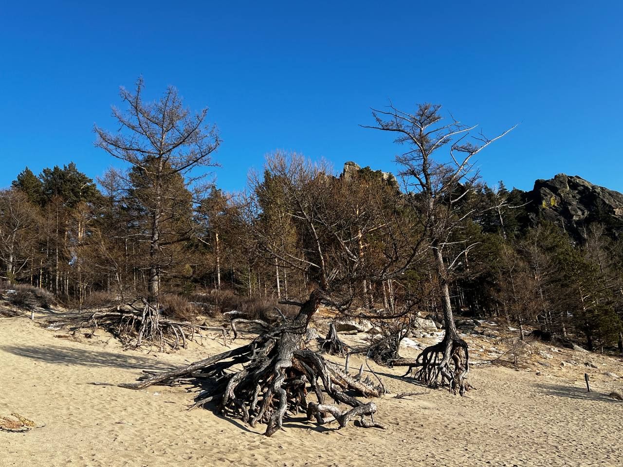 Вы увидите легендарные ходульные деревья — сосны, чьи корни обнажены ветром и временем, и они как будто застыли в невесомости.
