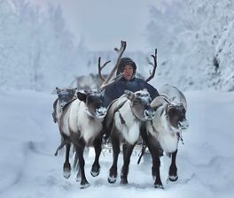 - Катание на нартах, запряженных оленями