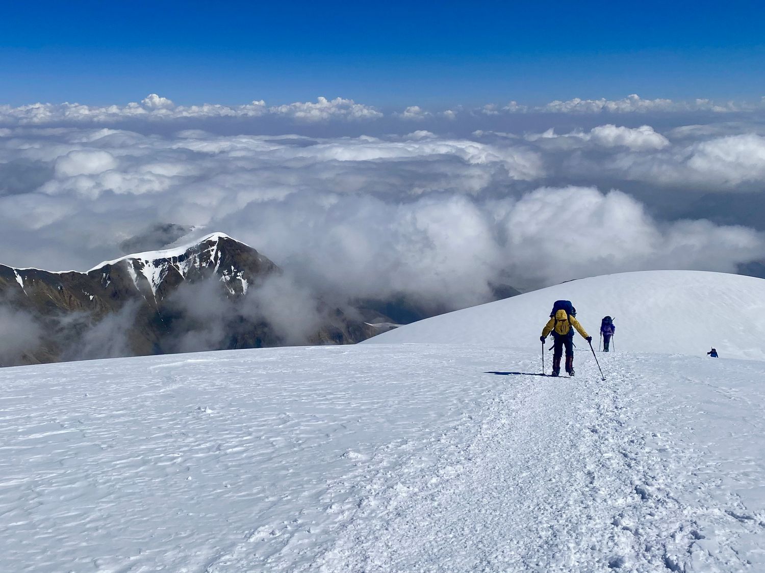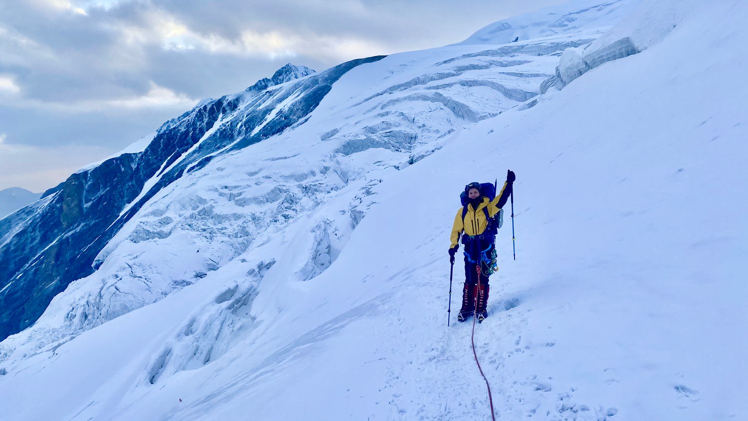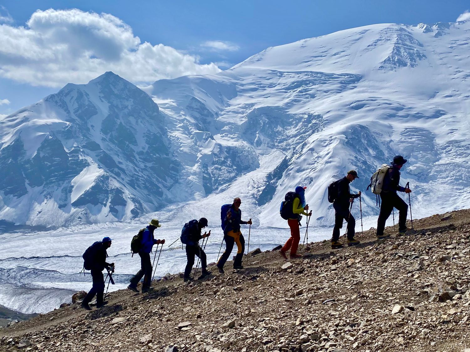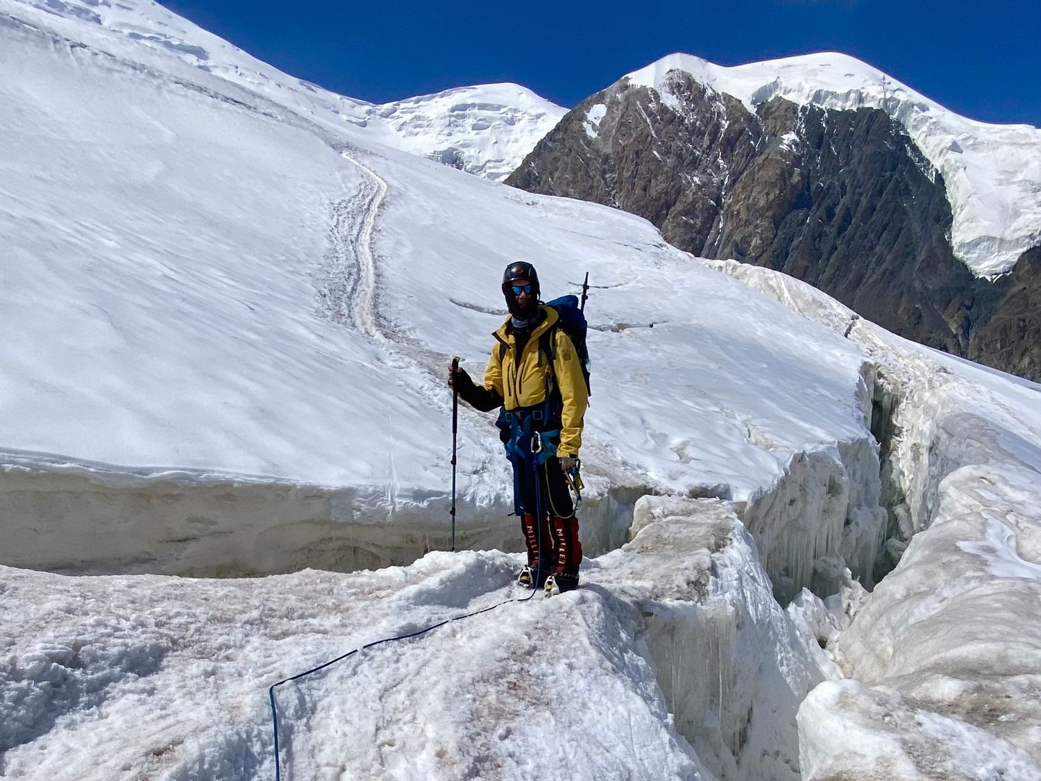 - Длительные переходы, движение по леднику, работа в связках, будем жумарить и дюльфирять, проходить по мостам через масссивные ледовые трещины