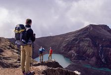 - Поднимемся на вулкан Горелый и увидим озеро прямо в кратере;