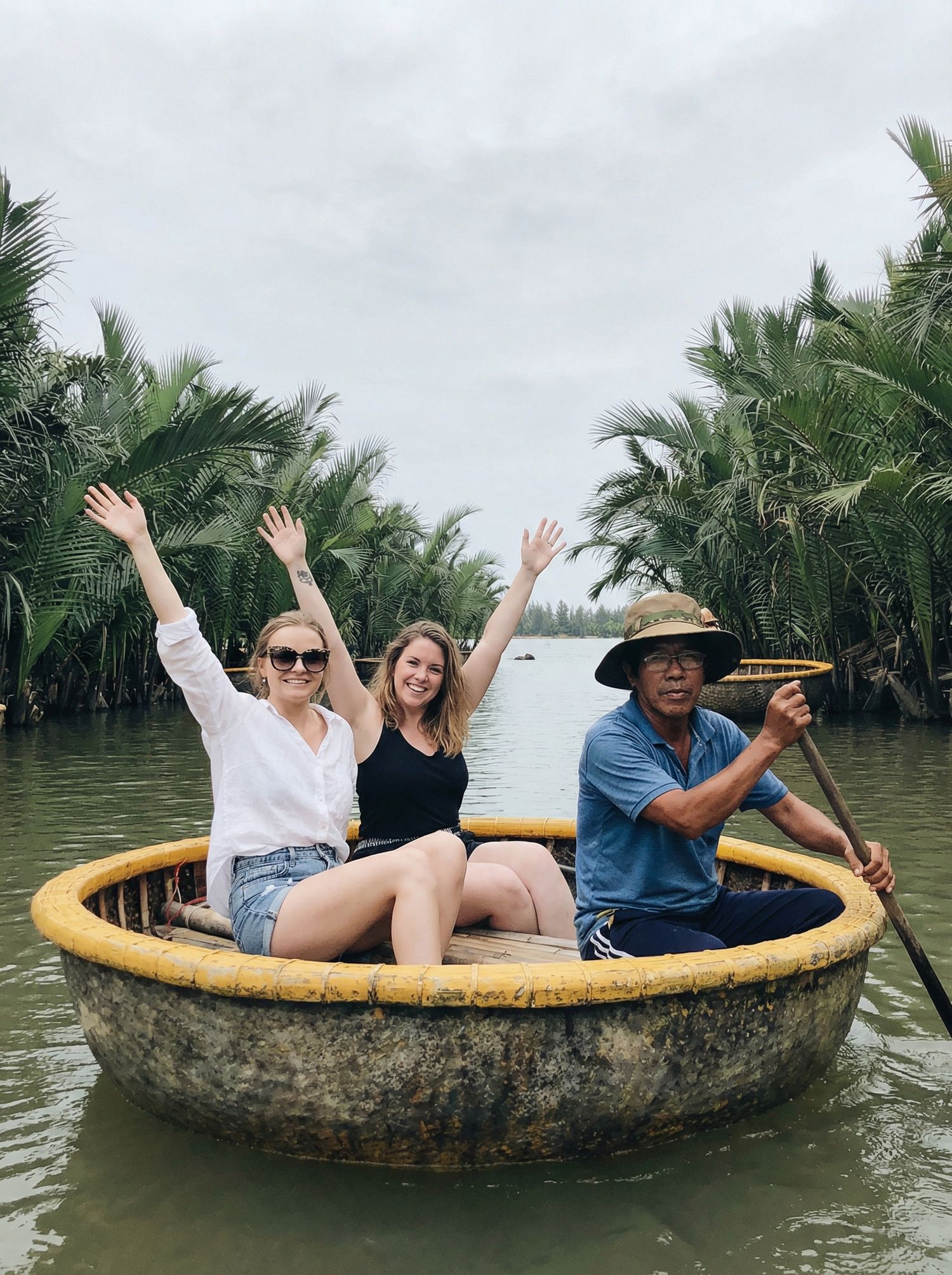 Поднимешься в Мраморные горы — к пещерам, храмам и панорамам, где хочется молчать и просто смотреть. А потом прокатишься в круглых лодках деревни Кам Тхань, смеясь и ловя момент без фильтров.