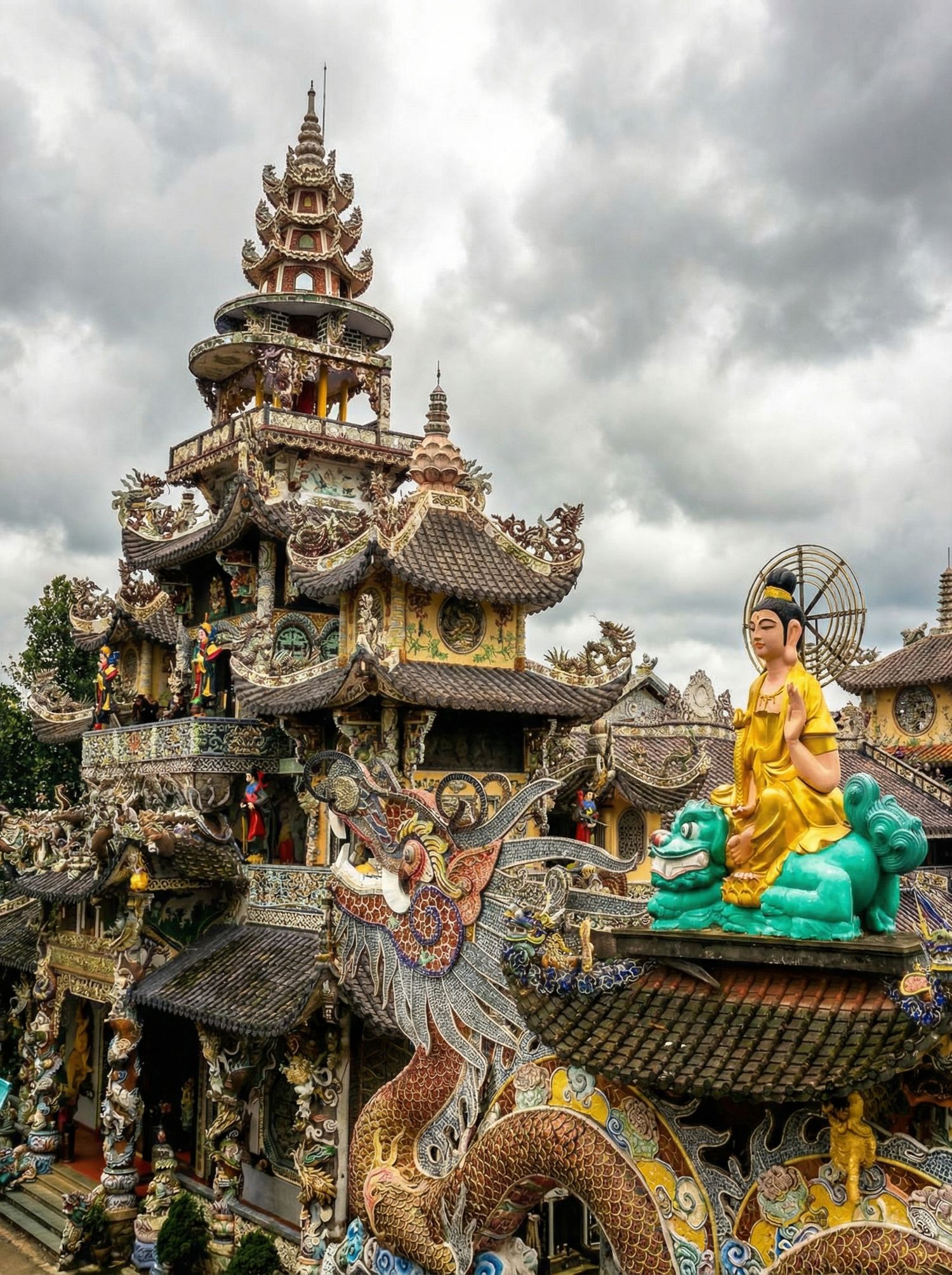 Поднимешься в горный Далат — город вечной весны, прохлады и французской эстетики. Увидишь водопады, сады и пагоду, собранную из тысяч осколков, где желания почему-то звучат особенно точно.