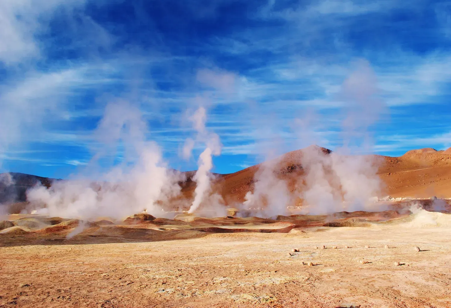 увидишь цветные лагуны, гейзеры, вулканы боливийского Альтиплано и пустыню Атакама - самое засушливое место в мире.