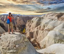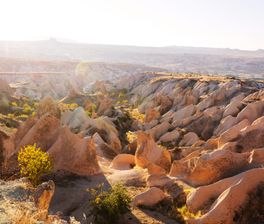 Каппадокия — это путешествие в мир, созданный самой природой. Величественные скальные ландшафты, выточенные ветром и временем, становятся декорациями для одной из самых захватывающих историй человечества. Здесь каждый вид — словно иллюстрация к древней легенде: высокие туфовые колонны, каменные грибы и розовые склоны долин создают фантастическое пространство, которое невозможно перепутать ни с одним местом на Земле.