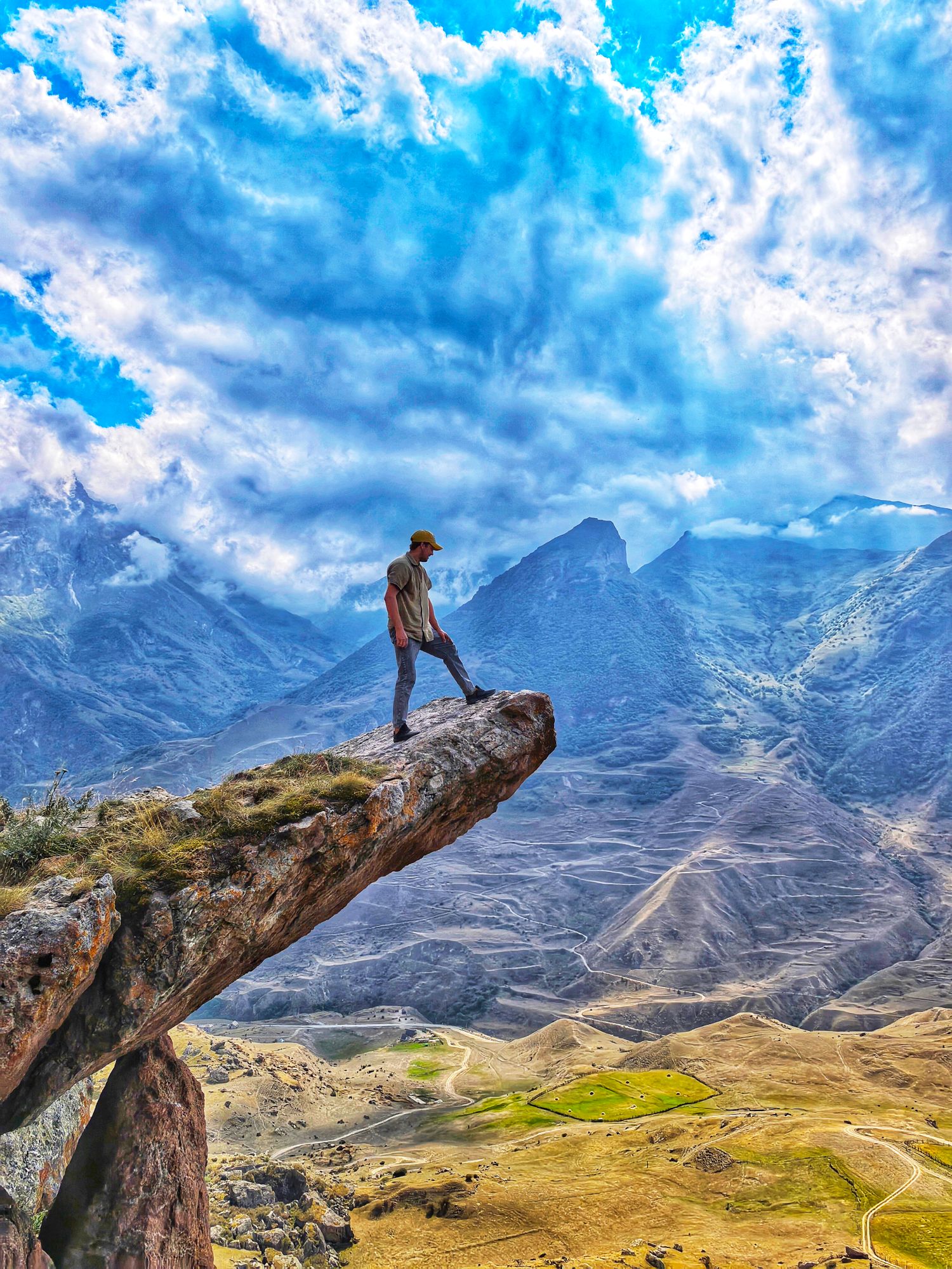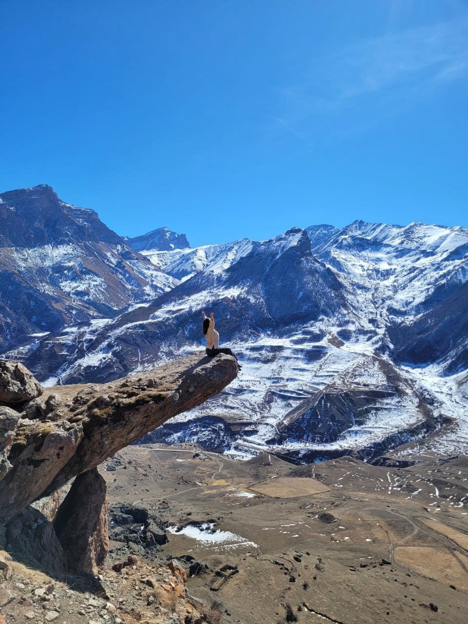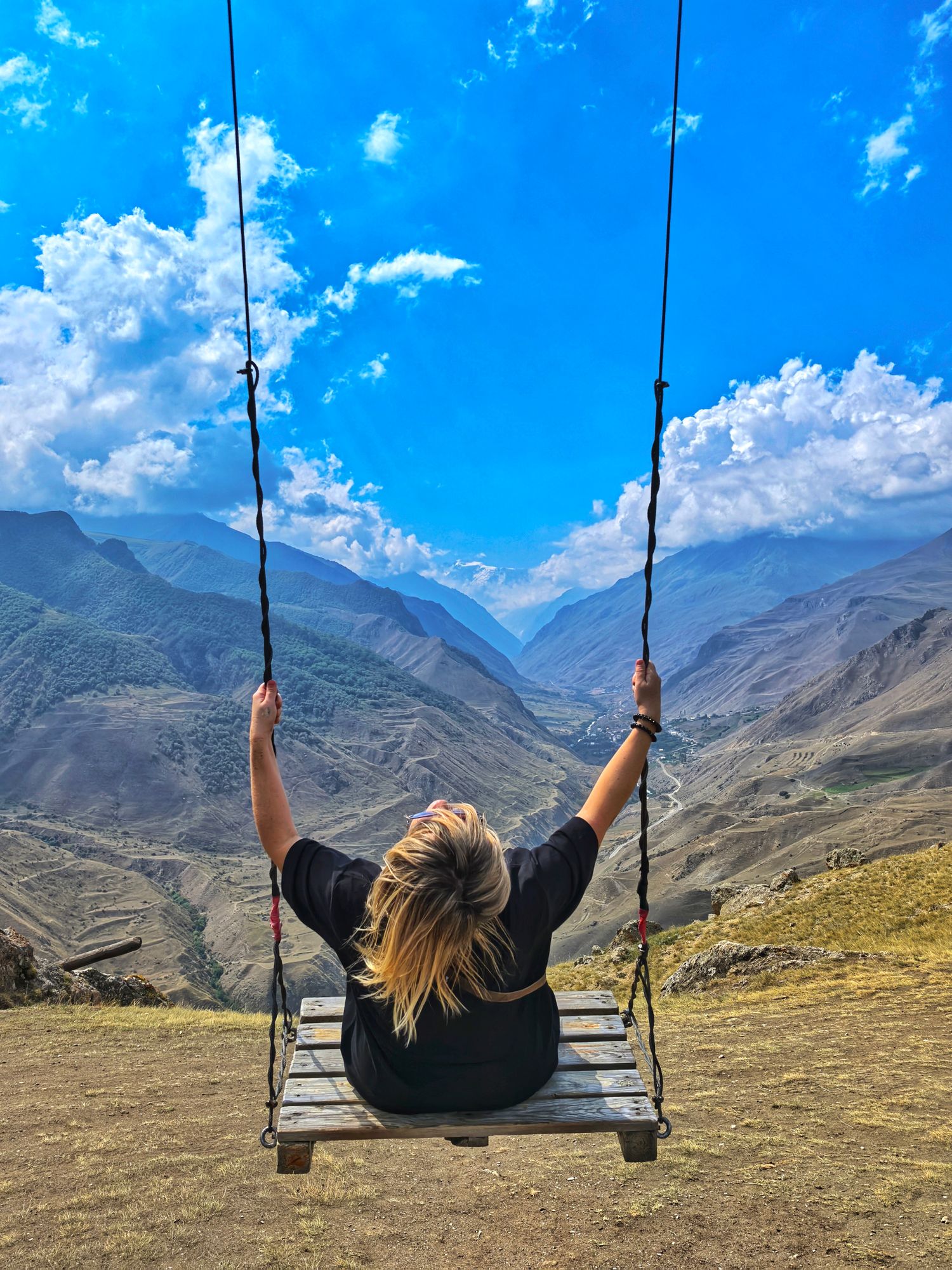 Первая наша остановка -Язык Тролля на высоте 2600 м, не хуже одноименной скалы в Норвегии! А какие у вас получатся фото. Здесь же нас ждут небесные качели с видом на ледники и пики, ветер играет волосами, а смех эхом разносится по долине.Еще до обеда мы успеем посетить водопад с нежным названием — Девичьи слезы. Холодная вода струится прямо со скалы, обрастая зелёным мхом. Подставляйте ладони — эту воду можно смело пить!