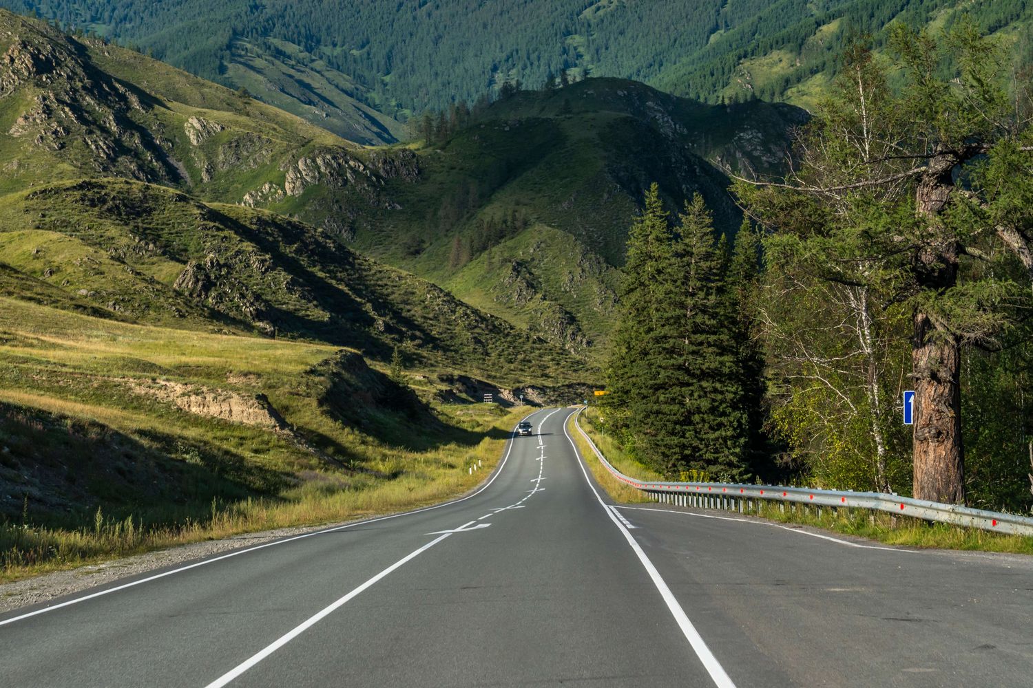 Встреча в аэропорту Горно-Алтайска. Знакомство с гидом. Завтрак, брифинг по предстоящему туру. Старт по Чуйскому тракту.Путь пролегает по одной из красивейших дорог мира (по версии National Geographic) - Чуйскому тракту. В древности он был известен как Мунгальский тракт. Около тысячи лет назад здесь шли караваны с грузами с Востока в Россию. А пересекаем мы его на мощных и комфортных джипах-крузаках. Подробнее об истории легендарной дороги расскажет ваш турлидер. Также будет возможность сделать фото на смотровых площадках. На Катунских террасах, слиянии рек Чуя и Катунь. А также на старой Вьючной Тропе. Нас также ждут два живописных перевала - Семинский и Чике-Таман.Размещение в эко-комплексе. Ужин.