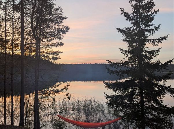 К вечеру выходим к озеру Пестово, где разбиваем лагерь. Находим уютную поляну с местом для гамаков, купания и будущей бани. Здесь мы будем жить несколько дней.