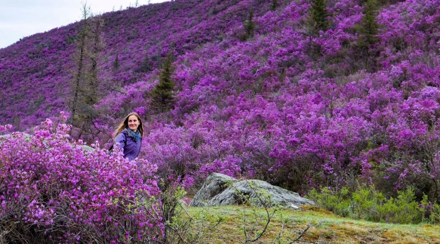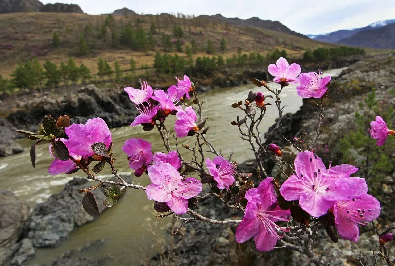 Именно за цветением маральника на Алтае стоит приехать в мае! Это непередаваемая красота в горах!