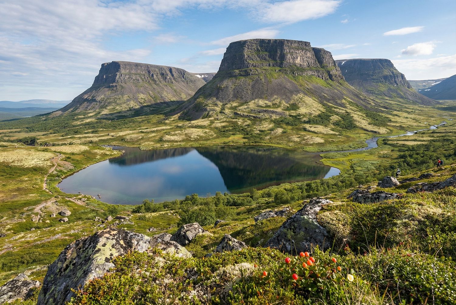 Второй Север — горный и более мягкий. Хибины. После океана они ощущаются особенно глубоко. Озёра, похожие на синие глаза Земли, водопады, срывающиеся с плато, горные долины и тундры. Здесь другой ритм — спокойный, собирающий. Идеальное место, чтобы замедлиться и завершить маршрут цельно.