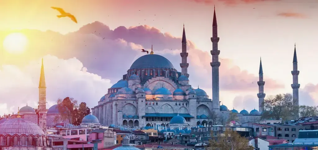 На обеде знакомимся поближе, пробуем кебабы, пахлаву и поднимаем чашки турецкого чая за старт! Прогулка у Айя-Софии и Голубой мечети, Босфор , Галатский мост и башня, Каракёй.