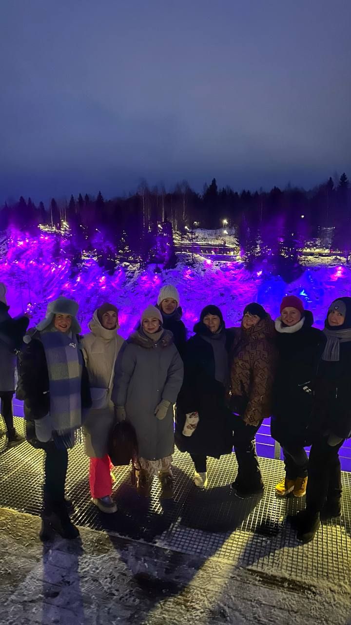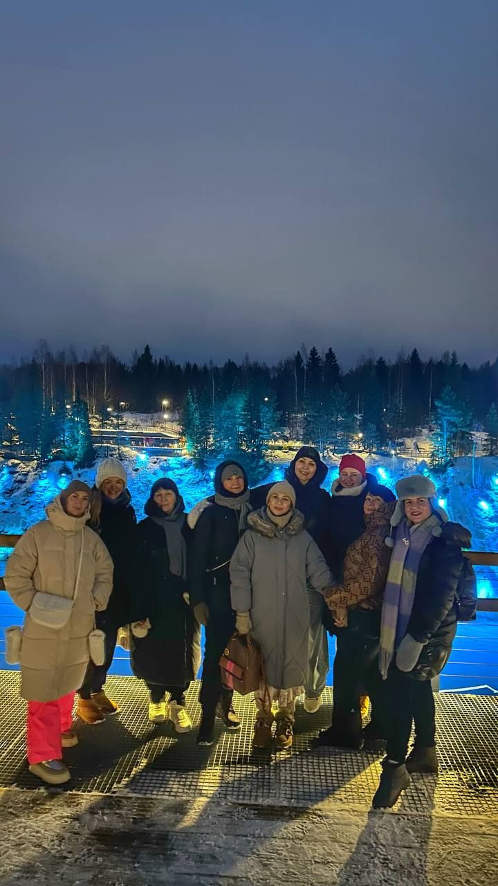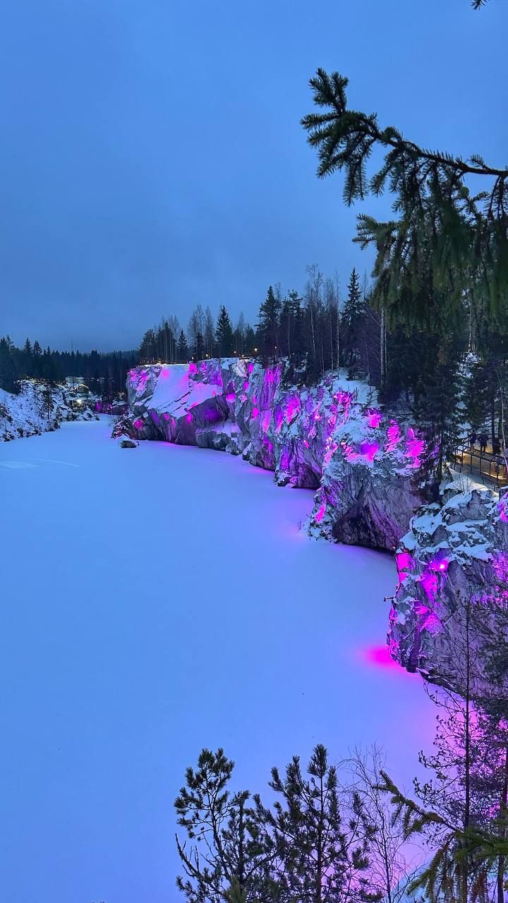 После обеда едем на Рускеальский экспрессе и гуляем в парке Рускеала — зимой здесь особенно красиво благодаря подсветке и сумеречной атмосфере.