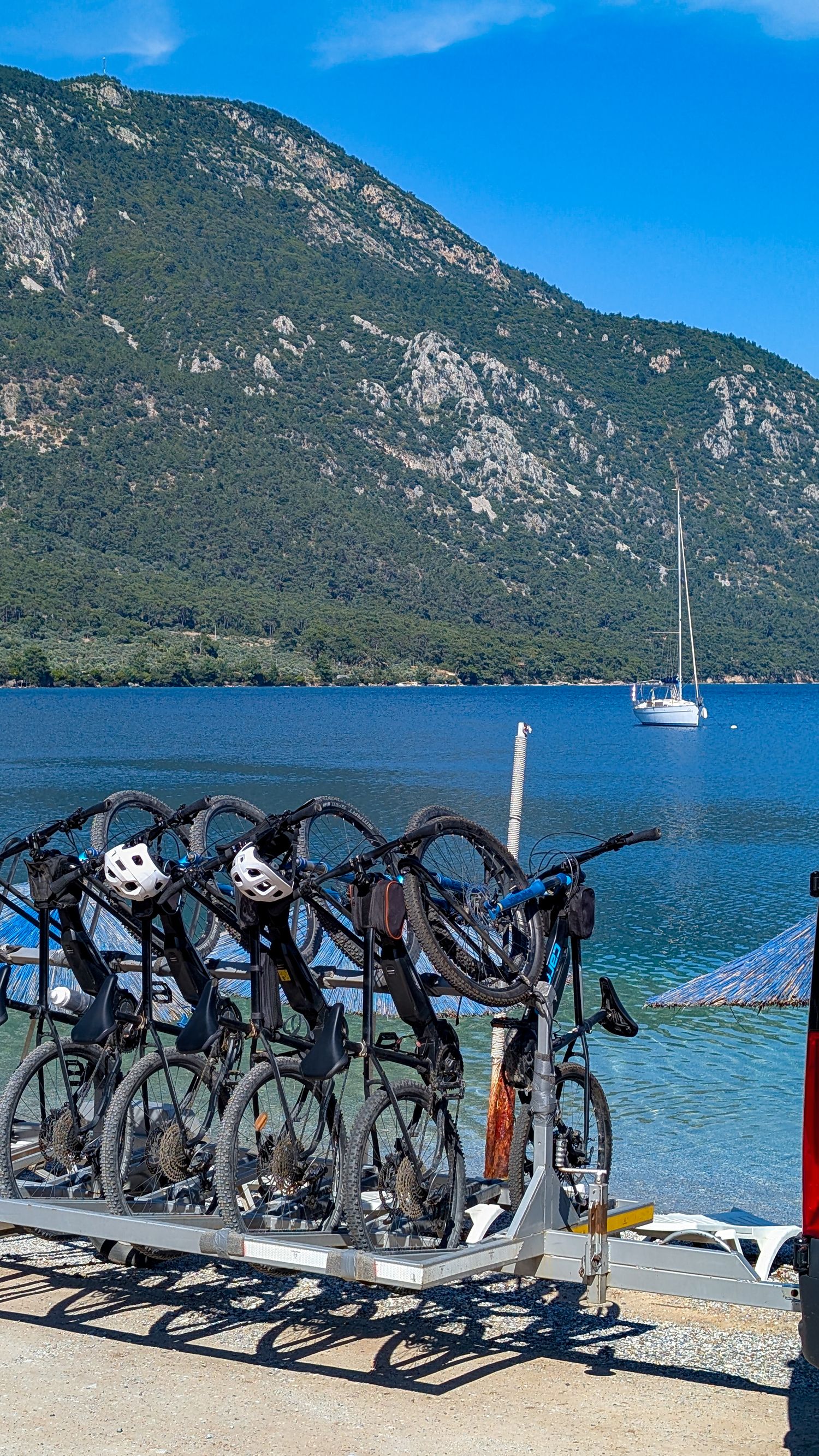Маршрут собран как серия велопрогулок по красивейшим участкам побережья от Бодрума до Даламана. Купания здесь не дополнение, а часть ритма дня: заехали в красивое место, искупались, поехали дальше.