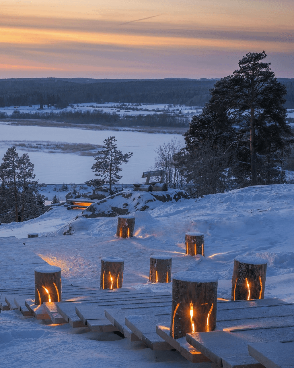 Далее поездка на гору Сампо - место с живописной природой, сосновым лесом и этническим контекстом. Узнаете кто такие Вяйнемейнен и Леминкянен, спуститесь в темное царство - Похъяла и послушаете как звучит кантеле.