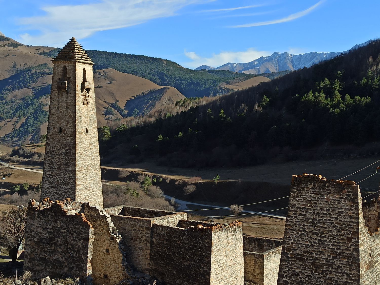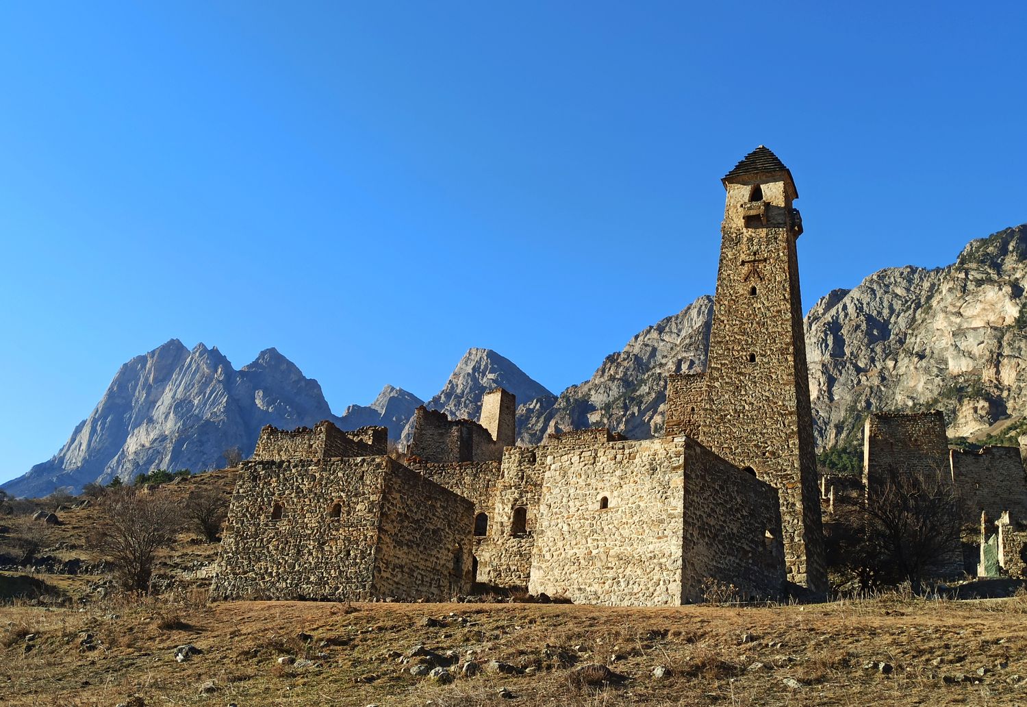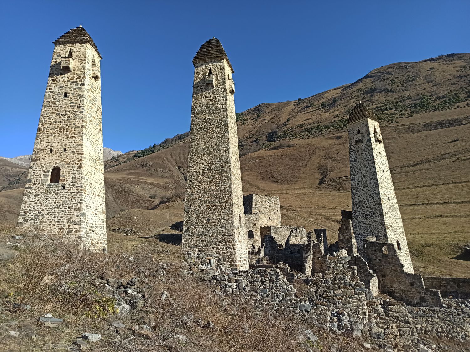 Горная Ингушетия - страна необычная. Здесь нет мощных ледников, как в соседней Осетии. А северные склоны покрыты хвойными лесами. Но что поражает еще больше - в каждом селении над жилыми постройками возвышаются, устремленные в небо 30-метровые каменные башни удивительно четкой и правильной формы. Основная часть сохранившихся башен были построены с 13 по 17 века. Но согласно историкам башни активно строились уже с 8 века. Что заставляло, проживавших здесь горцев возводить такие сложные сооружения? Почему они были вынуждены скрываться от внешнего мира за каменными стенами. Был ли это страх за свою жизнь и имущество, или реальная опасность захвата и порабощения? Башенное строительство вошло прочно в культуру ингушского народа и достигло значительного мастерства. И хотя они уже давно утратили свое боевое значение, башни продолжают возвышаться над мирными поселениями и напоминают о прежней истории этих мест. И о том, что возможно, наше сознание, и по сей день, продолжает создавать надежные бастионы для защиты от враждебных намерений инакомыслящих людей.