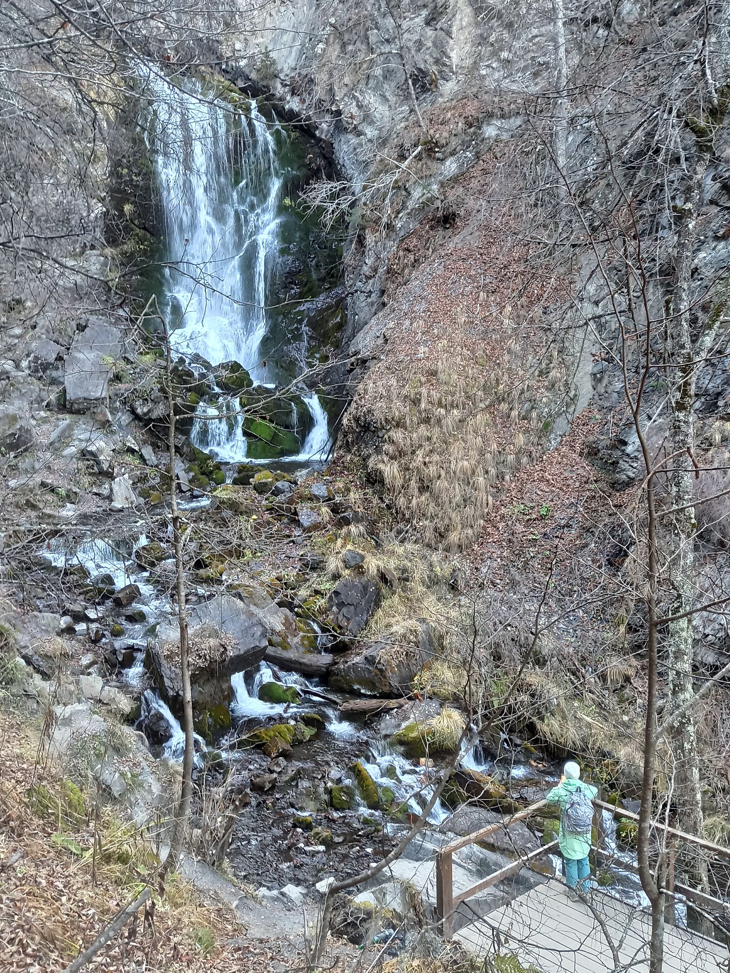 Берём с собой коврики и отправляемся по тропе на прогулку в сторону Ляжгинского водопада. Общая протяженность маршрута в одну сторону всего 1,4 км. Любуемся водопадом. Делаем незабываемые фотографии.