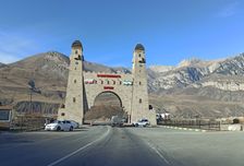 Около 10 ч въезжаем в Ворота Ингушетии. Делаем общую фотографию. в с.Джейрах посещаем Родовую Башню Цуровых.
