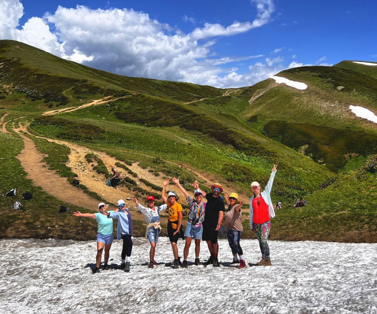 Команда, а не группа: Всего 8 человек + двое инструкторов (Инна по йоге, Антон по горам). Каждого видно, за каждого - отвечаем.