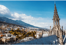 Ужин на террасе отеля с видом на город и достопримечательности исторического центра Кито.