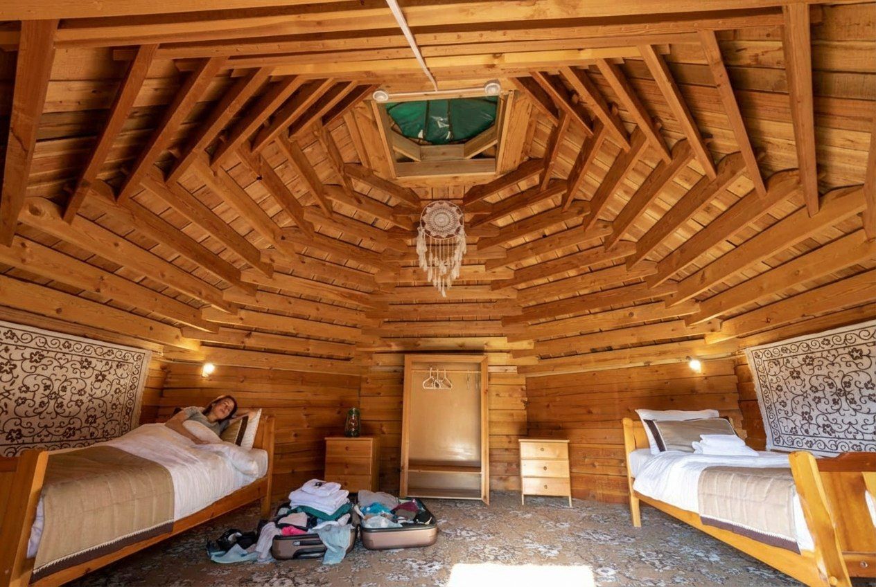 Далее нас забирает автобус и мы едем по Хакасским степям 136 км и размещаемся в юрточном комплексе.