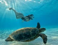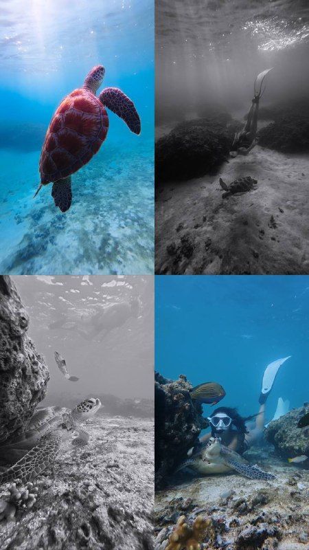 Подводная съёмка во время плавания с черепахами