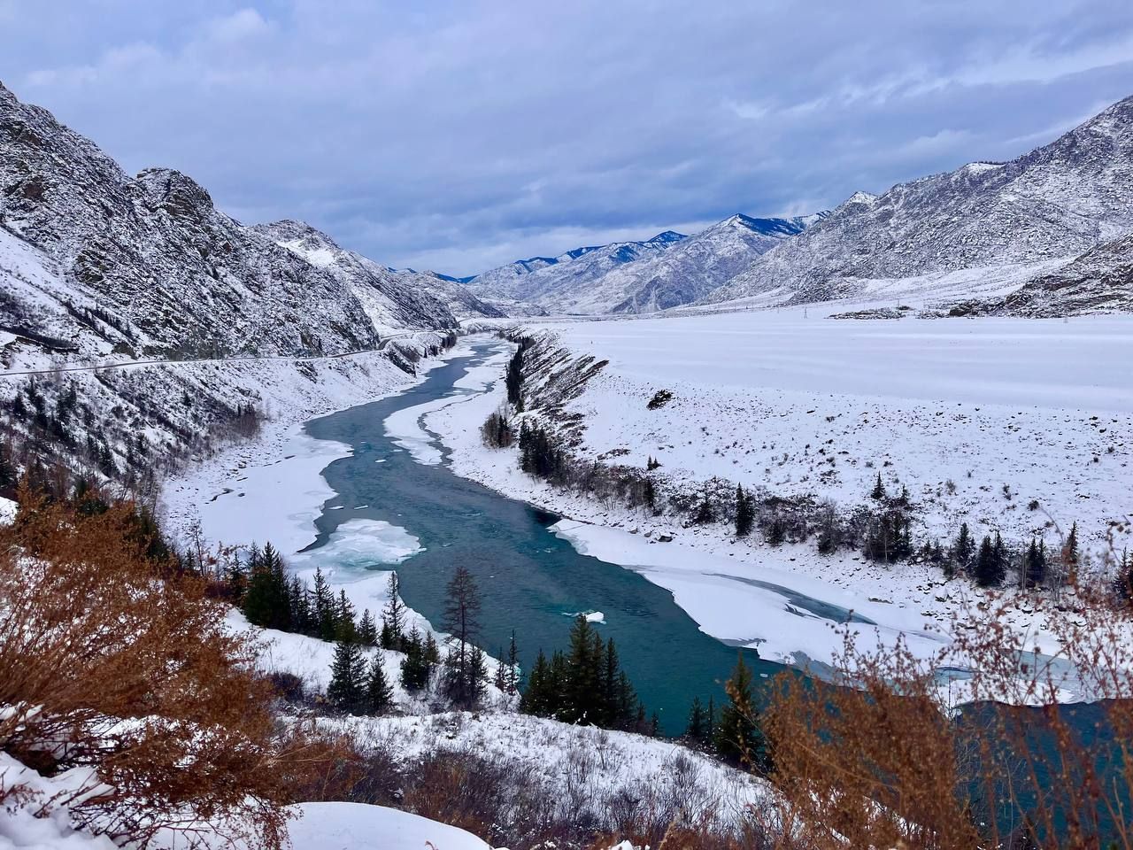 Зимние приключения на Алтае: Зимой Алтай превращается в зимнюю сказку. Снежные склоны, величественные горы и прозрачные бирюзовые реки создают невероятные пейзажи. В это время года здесь мало туристов, и вы сможете насладиться уединением и спокойствием.