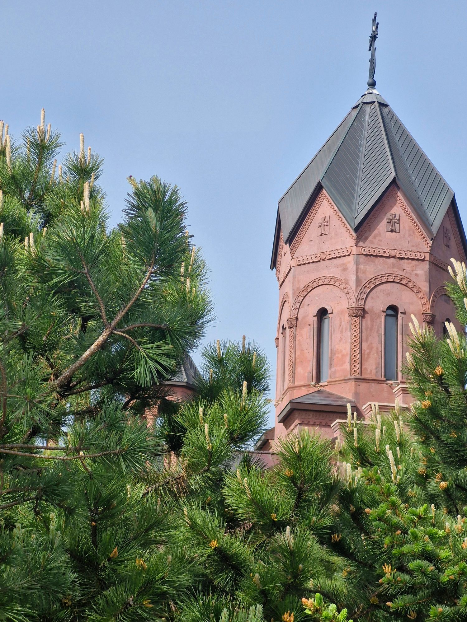 Посетим армянский храм Сурб Геворг, гармонично вписанный в горный ландшафт.