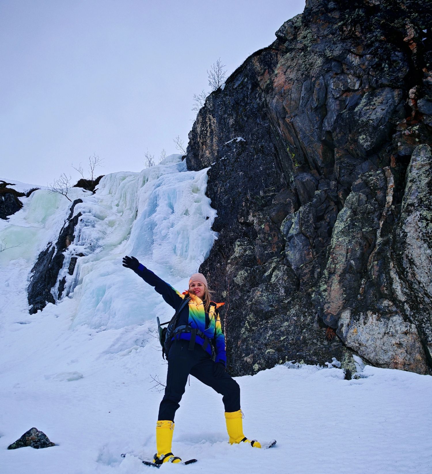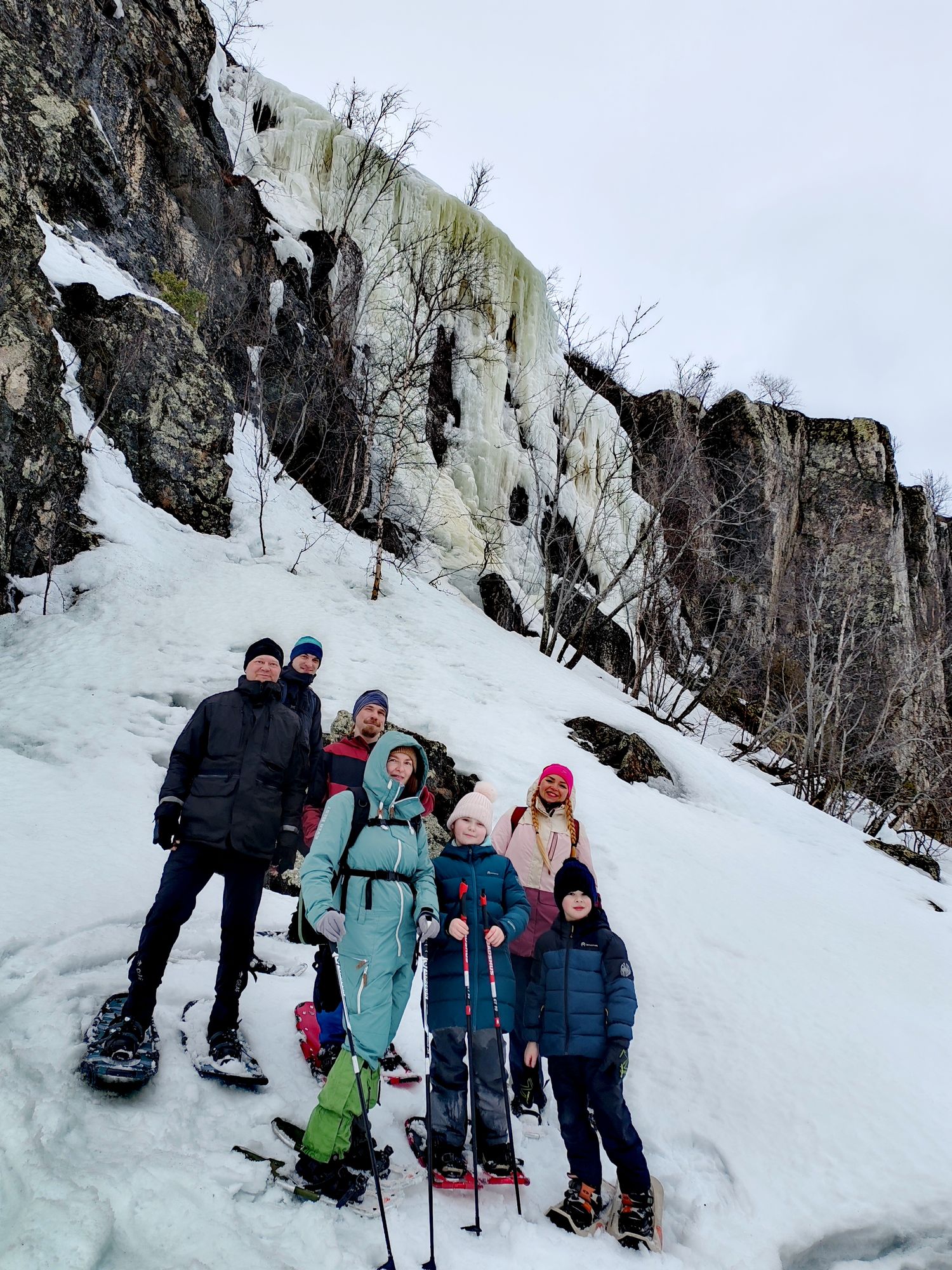 Рецепт идеального зимнего выходного на природе - снегоступы, ледопады и горячий чай с блинами.